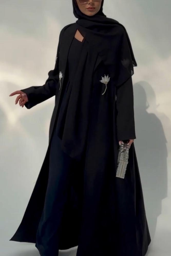 - أناقة فائقة تلتقي بالراحة المطلقة في عباية بلون ألأسود الراقي وتصميمها العصري، هذه العباءة تمنحك إطلالة أنيقة ومحتشمة في آن واحد.